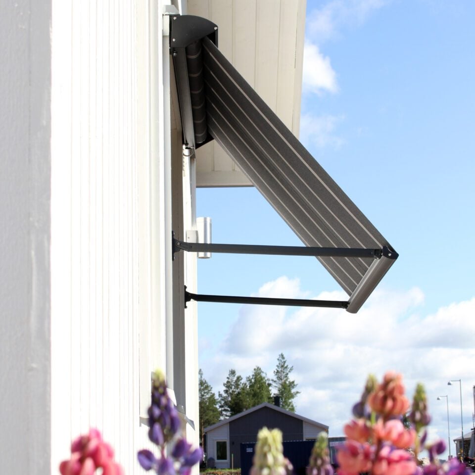 Våra stilrena, moderna och måttanpassade fönstermarkiser, även kallade fallarmsmarkiser, är enkla att manövrera med antingen vev, band eller motor. För en automatisk och självgående fönstermarkis kan motorn kompletteras med sol- och vindgivare.