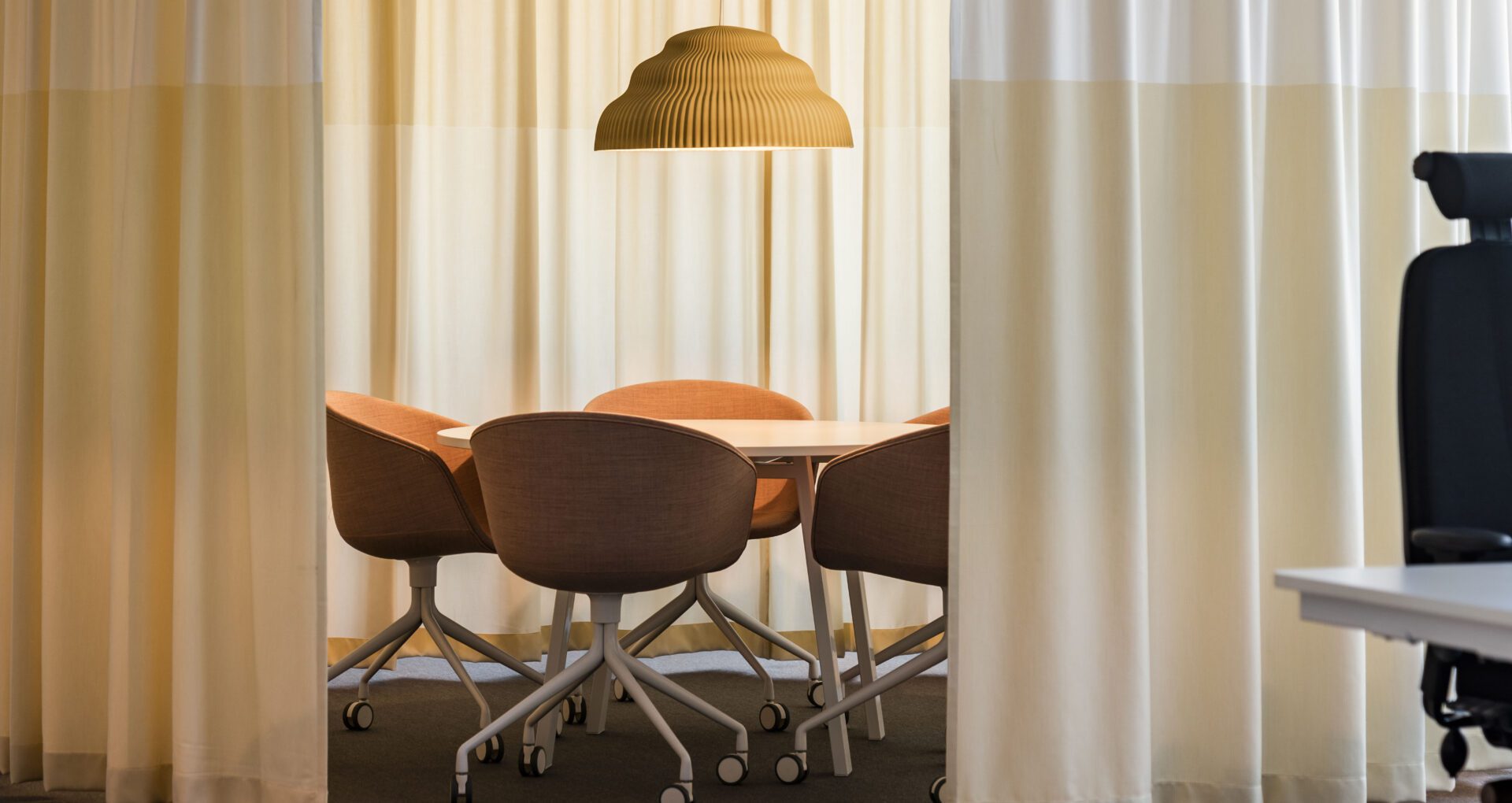 Mörkläggande gardiner är ett effektivt val för kontor, hotell och konferensrum där man vill kontrollera ljuset och skapa avskildhet. De stänger ute störande ljus och ger en exklusiv, harmonisk känsla i rummet. Vi erbjuder mörkläggande textilier i många färger och kvaliteter, samt kompaktare rullgardinslösningar för mindre utrymmen.